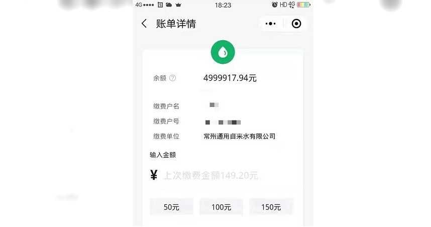 根据《搜狐新闻》报导指出,江苏常州警方在5月18日接获蒋姓女子的报案,内容中表示,蒋女原本打开水费缴纳帐户,打算使用微信缴纳水费,没想到在缴纳149.2元的水费后,水费帐户余额竟然呈现4999917.94元,这也代表,在缴纳水费之前,蒋女的水费帐户中有着500多万的余额,这让蒋女吓坏了。