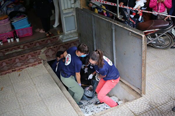 该机构在其脸书页面分享了此次非常规救援的照片。因为地下室没有窗户,更没有阳光,他们需要借助手电筒开展工作。