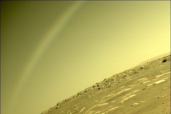 人们在地球上经常看到彩虹,但要在其他星球上看到彩虹可不容易。美国国家航空航天局(NASA)的无人探测器“毅力号”(Perseverance)日前从火星上传回来一张看似有彩虹高挂天空的图片,但可惜的是,那并不是彩虹。