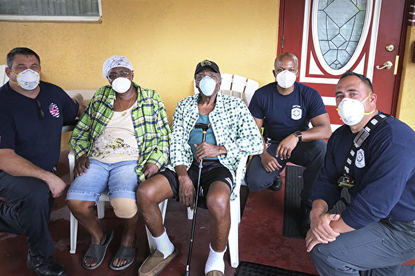 三位乐于助人的救援人员在当天晚些时候又回访了平克尼一家,以检查他的健康状况。丽贝卡表达了她对救援工作的赞赏。消防救援人员在离开前向这位退伍军人和他的妻子表示深深的敬意。
