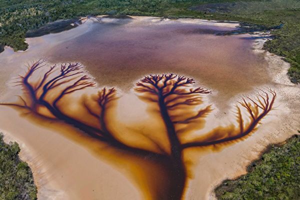 澳大利亚新南威尔士州北部经历了一场暴风雨的洗礼后,位于布鲁姆斯角(Brooms Head)的卡科拉湖(Lake Cakora)竟现身如同一棵立体的“生命之树”,当地一位业余摄影师在高空的镜头下,捕捉了一幅幅令人着迷的大自然之作。