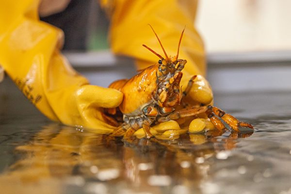 众所周知,螃蟹、虾等活的甲壳类动物,其外壳主要是偏青色或褐色的,然而美国一位渔民日前却捕获到一只黄金龙虾,极为罕见。