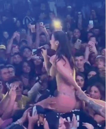 巴西女歌手「Pipokinha」 (皮波基尼亚)以游走在成人边缘的舞台风格闻名,近日她挑战尺度极限,身上只贴胸贴、穿丁字裤开唱,想不到竟被失控的观众摸个透,连丁字裤都被扯掉。