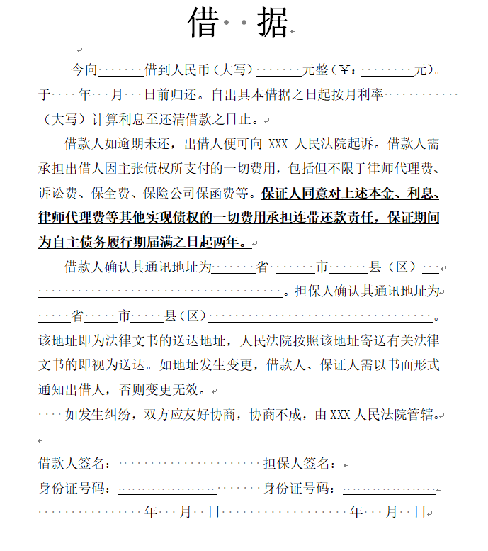 附上我写的借条模板一份