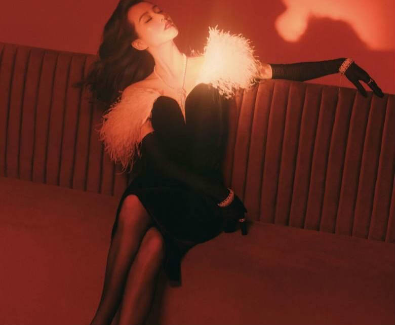 刘诗诗近来替杂志《iDestMagazine》拍照,一向给人清秀可人形象的她,难得抹上鲜红口红,穿上贴身的黑色低胸复古洋装、黑色丝袜跟黑色高跟鞋,搭配波浪卷发跟珍珠项链,在暖色系的灯光照耀下,展现成熟了人妻风情。粉丝看了都猛夸:「美艳诱人、优雅、媚人」、「好绝的港风美人」、「真的好美啊,气质真的没话说,绝了!」